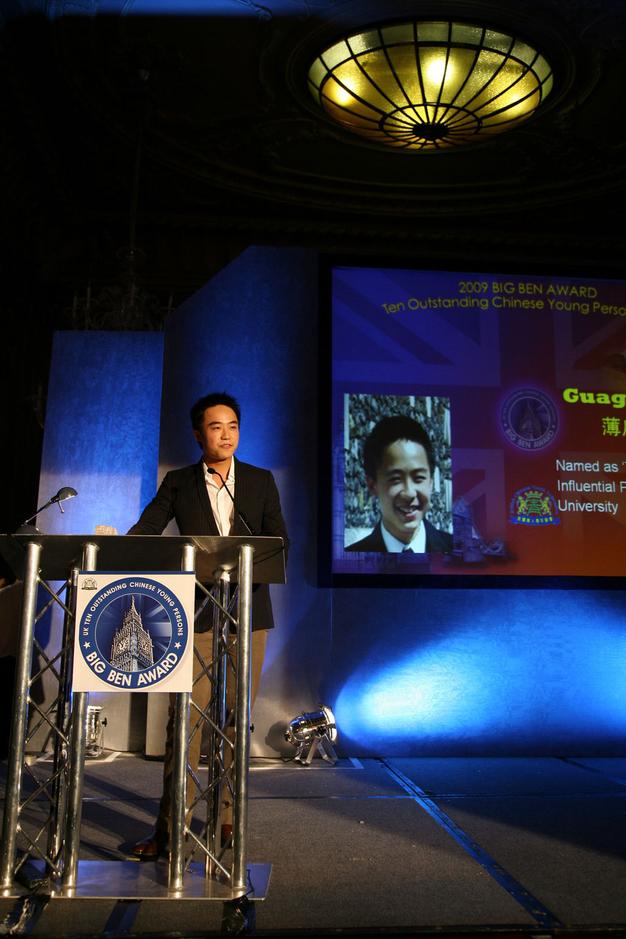 2009年,薄瓜瓜当选“英国十大杰出华人青年”时颁奖情形
