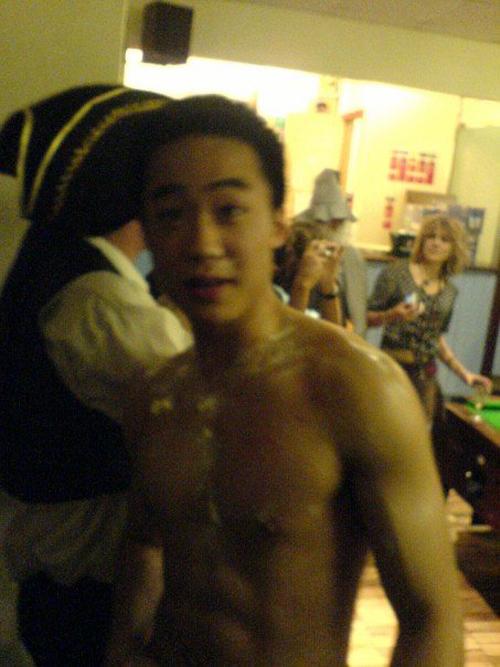 薄瓜瓜说,化装舞会的特点就是要求师生都以表演者的身份参与其中,大家都故意做出滑稽、搞笑的动作,这种方式能让同学关系和师生关系更融洽。在这种类似狂欢的集体活动中,平时很腼腆的同学也往往做出怪样,解脱平时巨大的学习压力。但不管大家多么兴奋,也只是联欢和表演,绝没有出格的东西,和黄色更不沾边。你说的这张照片,我和两个女生站在一起,只是对着镜头做了点怪样,比如我有意歪戴着领带。