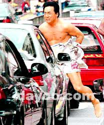 成龍曾在香港東區走廊裸奔,成龍於拍攝前,早已向警方申請,知會有關方面,因他要裸跑橫越東區走廊五條行車線。由於東廊為主要交通樞紐,不能封路,拍攝時只能將車截停,成龍看准時機迅速連跑過五條行車線,完成後再放車通過,該場戲大約拍了兩小時,交通未太受影響。此前,成龍在油麻地也裸奔過,他著住條肉色內褲打底,用報紙前遮後掩當街跑。