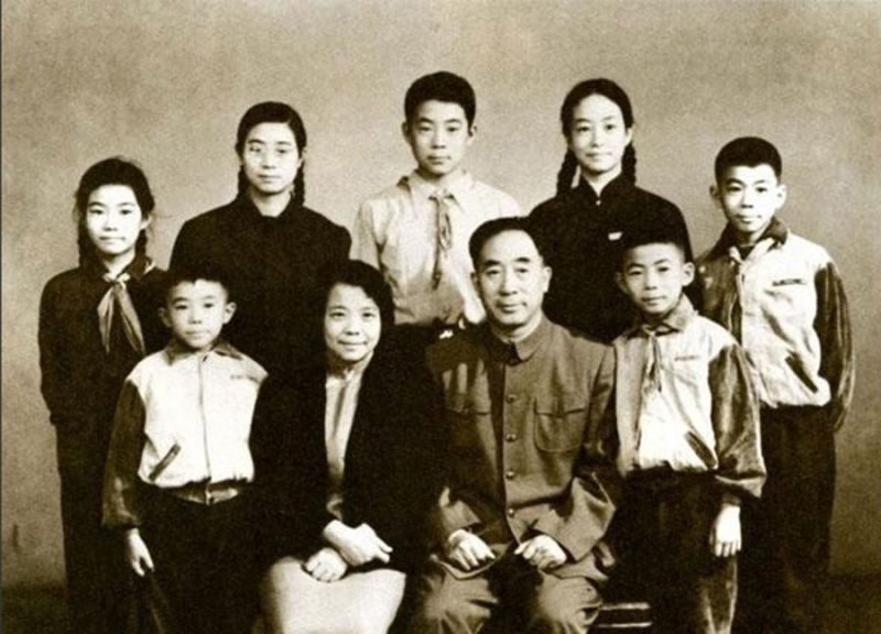 图为薄一波全家福,前排左起薄熙莹、薄小莹薄熙宁、薄一波、薄熙来、薄熙成、薄熙永。图为1960年,薄一波、胡明和子女合影