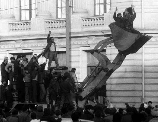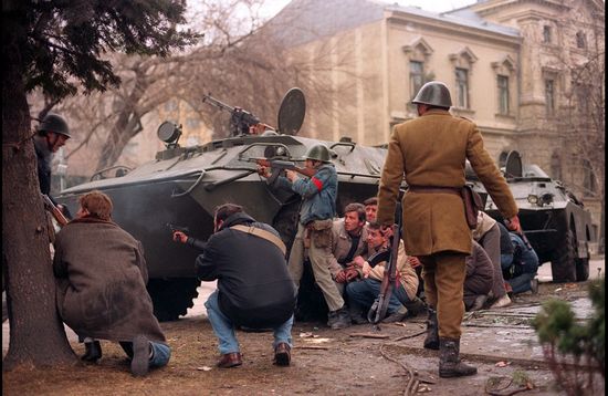 1989年12月24日,反对齐奥塞斯库的民众和士兵在布加勒斯特街头与其支持者展开巷战。