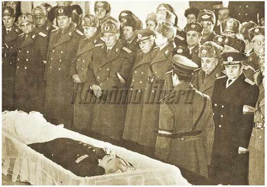 21日中午在布加勒斯特市中心的共和国宫广场上,数万名布加勒斯特市民出席了这次群众大会。12时15分齐奥塞斯库走上设在罗共中央大厦阳台上的主席台,开始讲话。但没过多久,群众便开始起哄,会场上一片混乱。图为米利亚葬礼,米利亚以自杀方式向国家做出了交代。