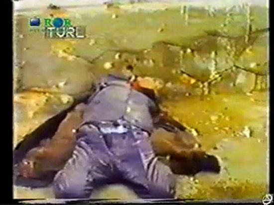 18时15分他们从后门进入特尔戈维什泰县警察局。这时,县警察局局长正同在政局剧变中成立的政党——罗马尼亚救国阵线的两名代表进行交谈。他们看到齐奥塞斯库和夫人后,立即对齐夫妇进行了搜身检查并通知了当地的兵营领导。当地兵营的指挥官马雷什少校把这一情况向罗马尼亚国防部最高领导作了汇报。国防部命令把齐夫妇转移到兵营里,严加看管,绝不能让齐的亲信把他们救走。图为齐奥塞斯库遭枪决时情景。