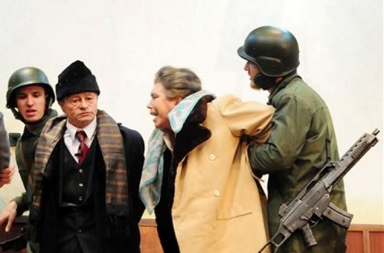 2009年12月9日,罗马尼亚艺术家排演话剧,再现齐奥塞斯库夫妇被处决前的情景,以纪念东欧剧变20周年。