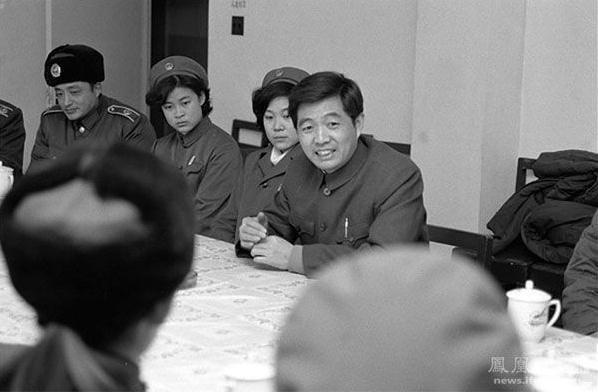 1984年12月,胡錦濤升任共青團中央書記處第一書記。圖為1985年1月12日,時任共青團中央第一書記的胡錦濤接見武警部隊讀書演講小分隊的幹部、戰士並同他們一起座談,鼓勵他們為四化刻苦讀書。
