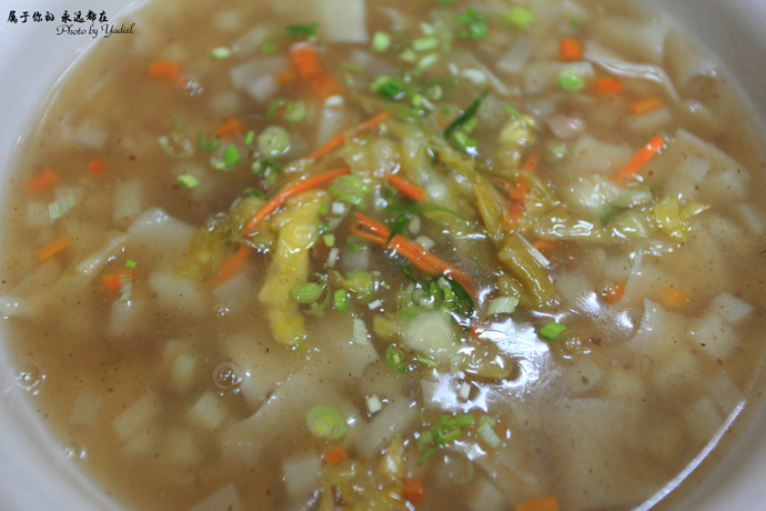 【P18】羊杂汤里面掺些土豆粉条,有荤有素,油而不腻,质醇味美,捞出锅来热气腾腾,香气袭人,吃起来味道鲜美,具有明显的驱寒、暖胃、舒身等功能,是一味较好的食疗保健食品。