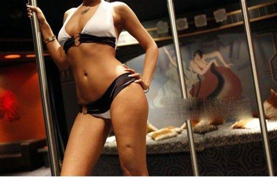 25岁的糖果心在跳舞俱乐部表演钢管舞。