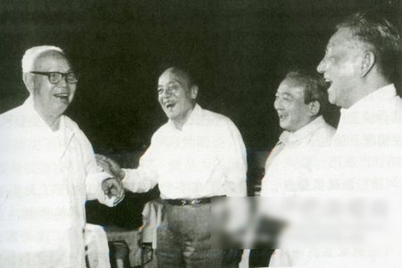 1980年5月,习仲勋(右一)与叶剑英、杨尚昆、刘田夫(左起)亲切交谈。