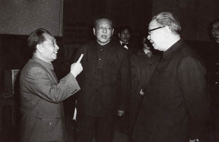 1982年,习仲勋(中)与胡耀邦、姬鹏飞交谈(右)