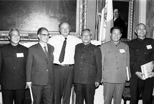 习仲勋(右三)与当时的纽约市市长科赫(Ed Koch)合影。照片中还有时任甘肃省委书记的宋平(左二)。