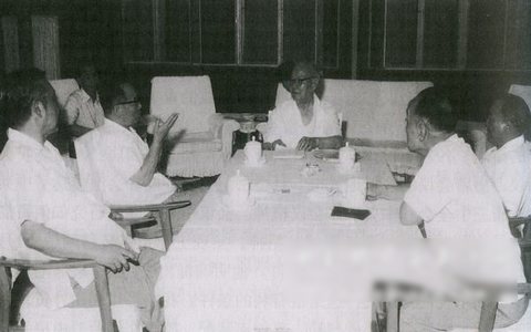 图为习仲勋向叶剑英汇报广东改革开放情况。左起:习仲勋、谷牧、叶剑英、刘田夫、杨尚昆