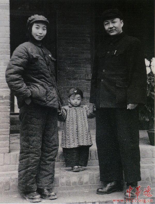 1950年,习仲勋和夫人齐心及女儿桥桥在西安。