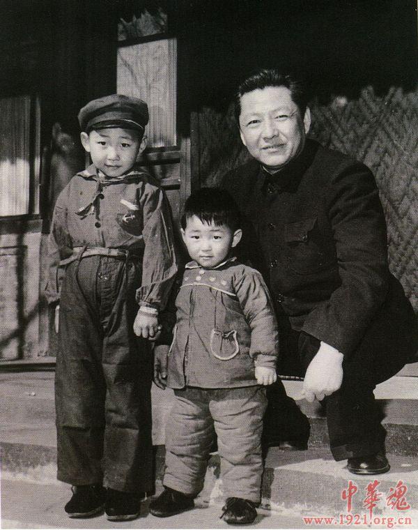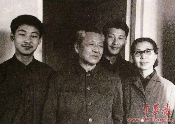 习仲勋、齐心与儿子近平(右二)、远平(左一)。
