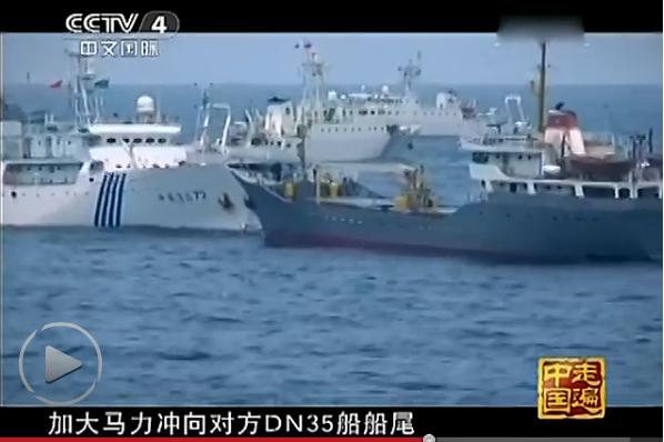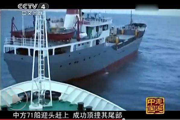 这是CCTV-4近日播出纪录片《蓝疆卫士》,片中首次披露中国海监曾在南海与闯入我领海的越南船只对峙,并实施撞击的情况,两国船只距离极近,当时的情况十分危险,场面很震撼。