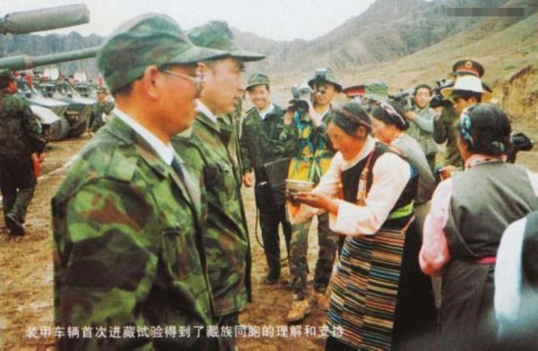 1989年3月,西藏拉萨刚刚发生了藏独分子暴乱,1990年,坦克装甲车辆就进藏试验,因此我们十分重视民族关系和敏感问题,试验大队还专门设立安全小组。令人欣慰的是,藏族同胞对我们这支队伍特别友好,对装备试验工作特别欢迎、理解和支持。当地军民送给我们的对联是:铁流滚滚首次碾上后藏疆土,世界屋脊将士喜迎战友光临,横批是:亲如一家。