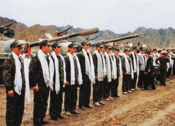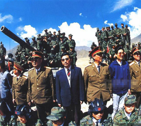 89拉萨暴乱 胡锦涛和坦克战车合影