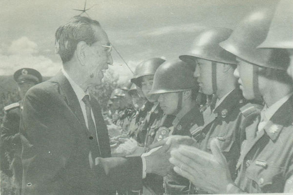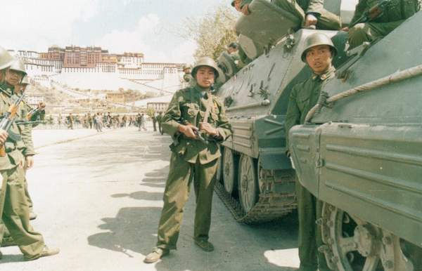 1989年3月7日,国务院总理李鹏发布在西藏自治区拉萨市实行戒严的命令:鉴于少数分裂主义分子不断在西藏自治区拉萨市制造骚乱,严重危害社会安定,为了维护社会秩序,保障公民人身、财产的安全,保护公共财产不受侵犯,根据宪法第89条第16项的规定,国务院决定,自1989年3月8日零时起在拉萨市实行戒严,由西藏自治区人民政府组织实施,并根据实际需要采取具体戒严措施。图为全国人大常委会副委员长阿沛.阿旺晋美慰问戒严部队。