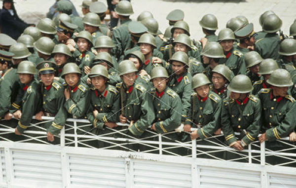 1989年3月7日,国务院总理李鹏发布在西藏自治区拉萨市实行戒严的命令:鉴于少数分裂主义分子不断在西藏自治区拉萨市制造骚乱,严重危害社会安定,为了维护社会秩序,保障公民人身、财产的安全,保护公共财产不受侵犯,根据宪法第89条第16项的规定,国务院决定,自1989年3月8日零时起在拉萨市实行戒严,由西藏自治区人民政府组织实施,并根据实际需要采取具体戒严措施。图为1990年5月1日零时,拉萨结束戒严,藏族群众与戒严官兵话别。