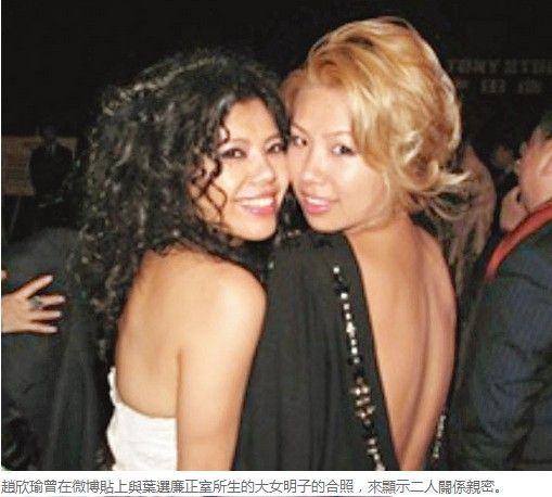 据了解,叶选廉正室苏丹丹离世后,赵欣瑜于去年十二月四日,在微博自爆与叶选廉结婚,且贴出内地政府发出两本外貌残旧的红色结婚证书。为加强事件可信性,赵欣瑜再发放三张与叶选廉的亲密合照;照片上的叶选廉头发由全黑变半白,以证两人关系并非近三两年发生的事。
