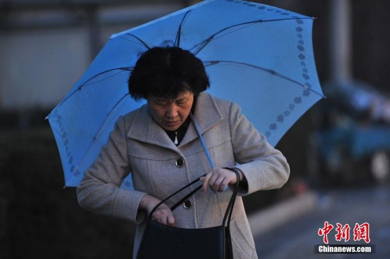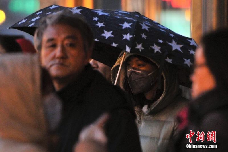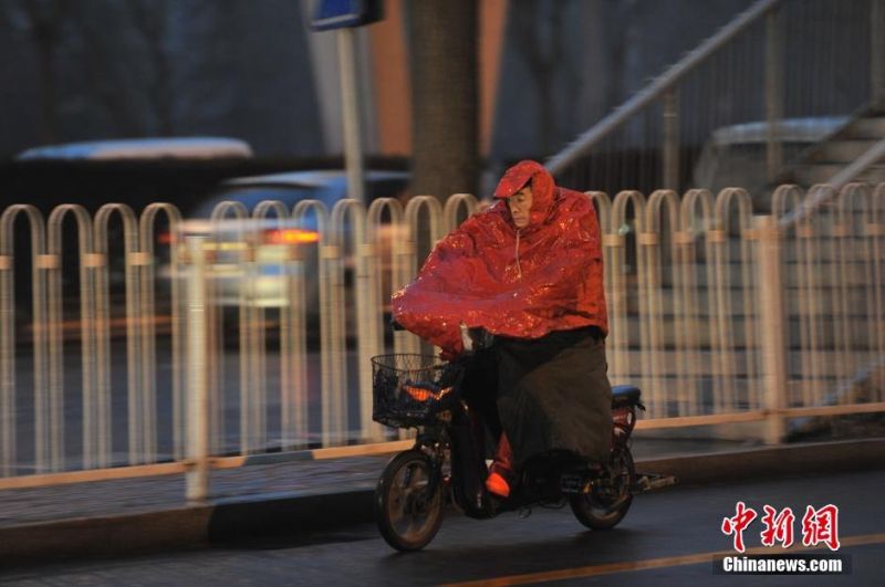 图为2月26日,北京民众冒雨出行。中新网记者 金硕 摄
