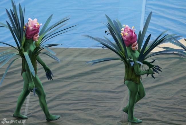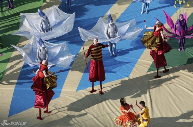 参与世界杯开幕式的总共有500名演员,外加150名技术人员、150名制作人员及演员统筹。参加这次开幕式表演的所有演员都来自圣保罗当地,他们合力展现出世界初创时的美妙画面,江河汇集,地貌发生变化,植物及动物逐渐出现,人类随之诞生。