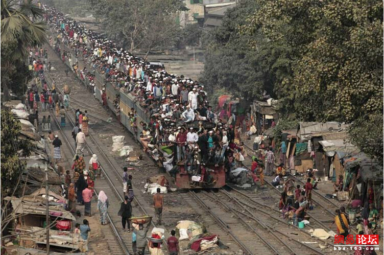 孟加拉还有一部分人每天要乘火车上下班。