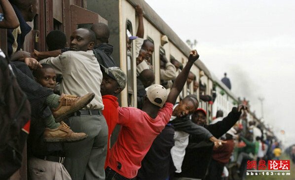 2010年1月,肯尼亚, 由于小巴司机的罢工,乘火车出行就变得相当地不愉快了。