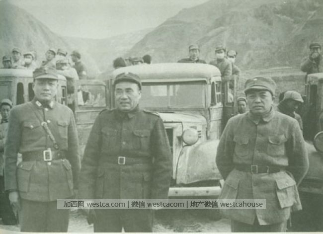 据《彭德怀全传》和《彭德怀年谱》记载,1965年9月的一天,彭真在人民大会堂向彭德怀传达了毛泽东的意见,要他去三线搞建设。由于彭德怀一时没想通,于是他断然拒绝了毛泽东的好意。图为彭德怀1944年与毛泽东和美军观察组成员在延安合影。