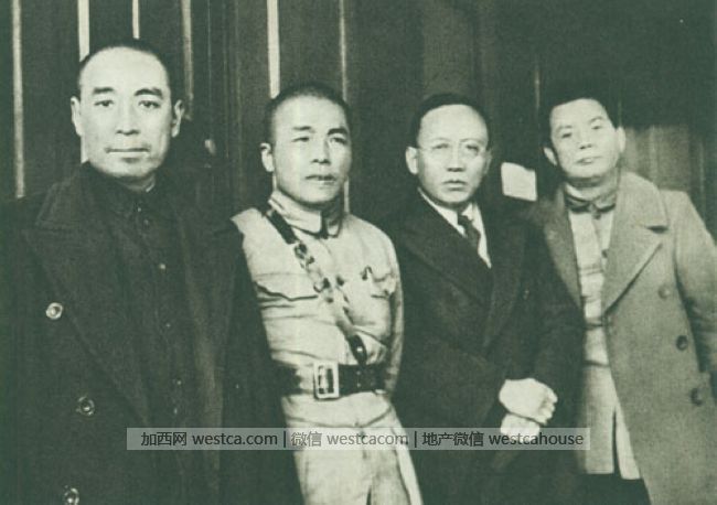 庐山会议后,叶剑英曾就当时的事情写下了一首诗:“庐山云雾弄阴晴,伐木丁丁听有声。五老峰头偏向左,东方红后见分明。”图为彭德怀1938.1为国共合作共同抗日去武汉,在汉口车站合影。左起:周恩来彭德怀、郭沫若、叶剑英。