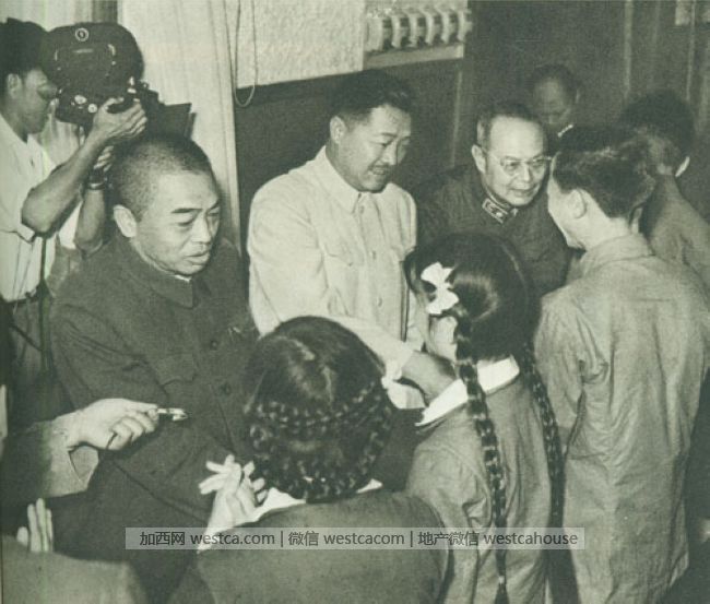 有人曾尝试着解读这首诗,说这首绝句诗的后半段蕴含着两层意思。其一是暗指包括叶剑英自己在内的老帅们、几乎都曾赞同过彭德怀的意见书;其二是说等到“东方红后”,曾经被迫偏右的“五老”们,对是非曲直所寄托的期望。这种解释是亦非也,自待评说。但不管怎样,叶剑英的诗含蓄深沉,锋芒不露,他给后人留下了一个迂回和想象的空间。图为彭德怀1958.6和贺龙、叶剑英接见四川省残废军人教养院课余演出队成员。