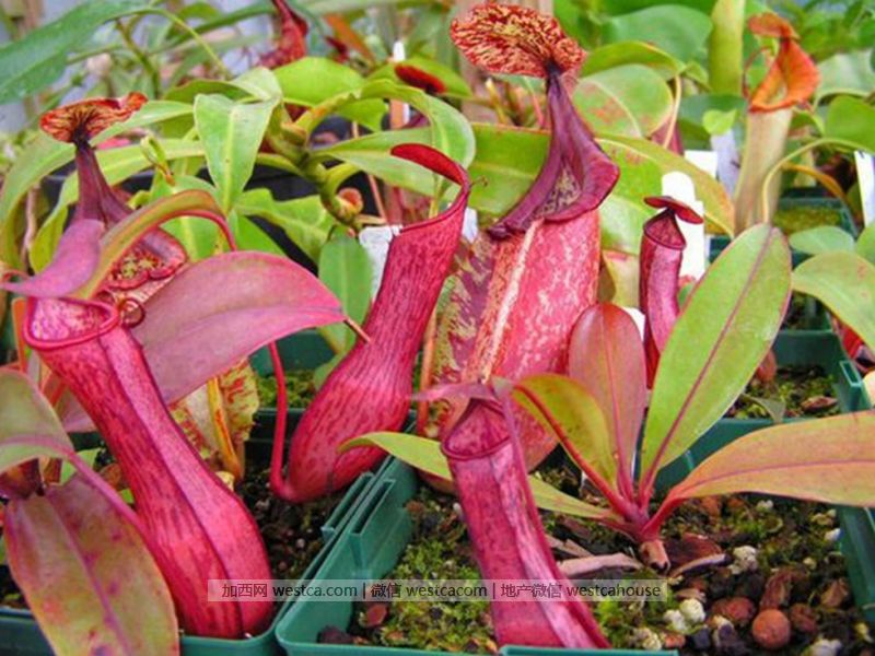 猪笼草:属于热带食虫植物,其拥有一个独特的吸取营养的器官--捕虫笼。捕虫笼呈圆筒形,下半部稍膨大,笼口上具有盖子,因其形状像猪笼而得名。瓶状体的瓶盖复面能分秘香味,引诱昆虫。瓶口光滑,昆虫会被滑落瓶内,被瓶底分泌的液体淹死,并分解虫体营养物质,逐渐消化吸收。