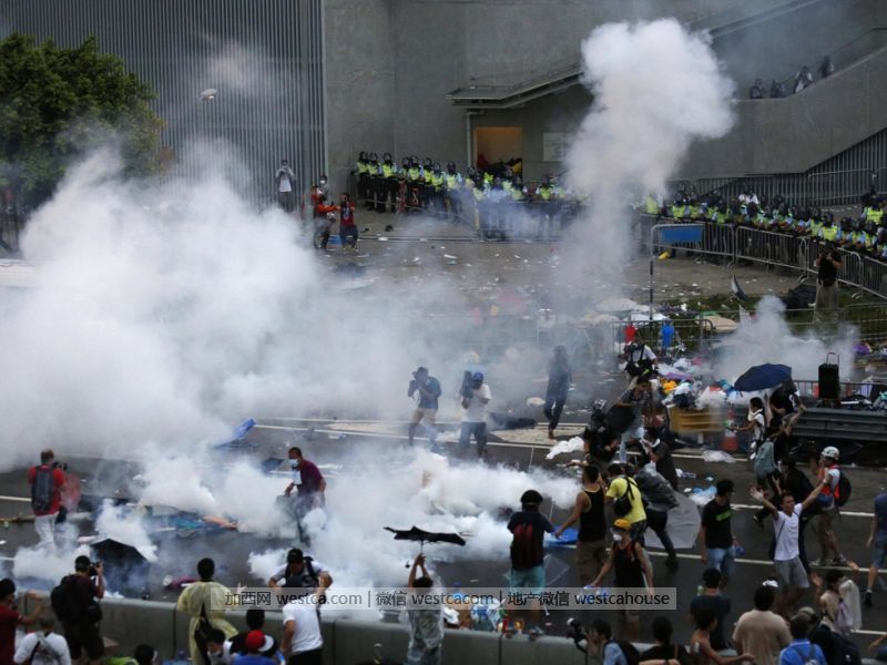 警方施放催泪瓦斯,现场一片混乱