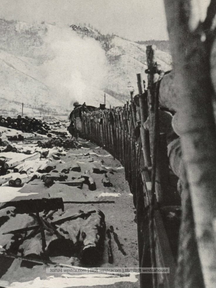 1942 牡丹江横道河子运送木材的火车
