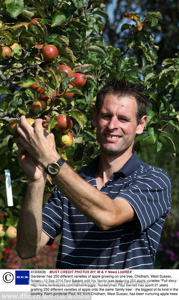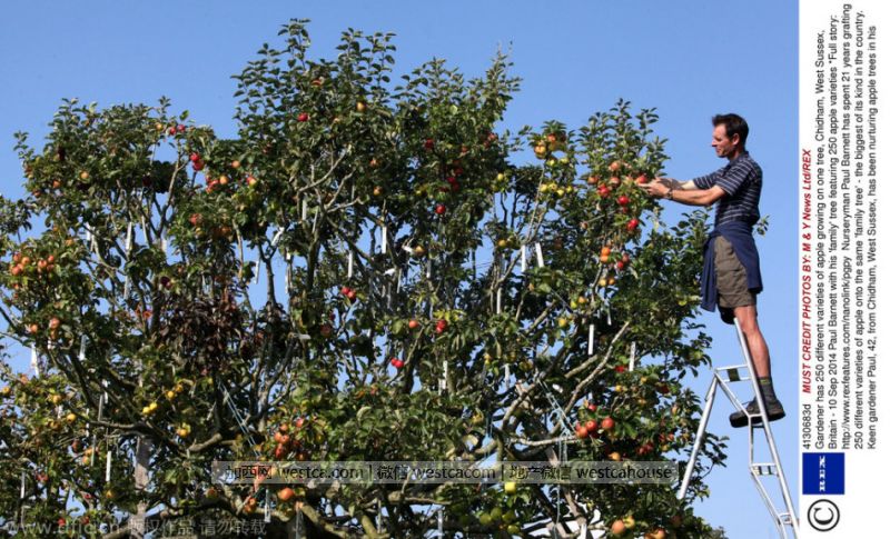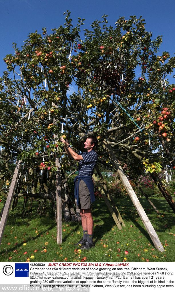 Paul Barnett花了25年时间将250种苹果嫁接到一颗苹果树上,使这棵树成为了全英最大的苹果树。