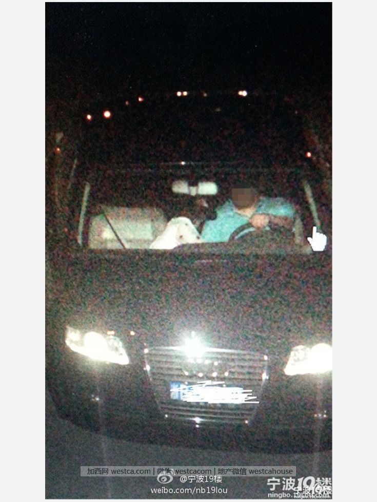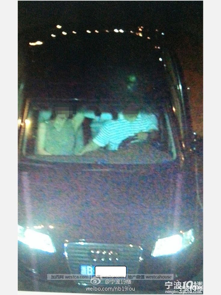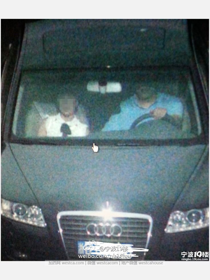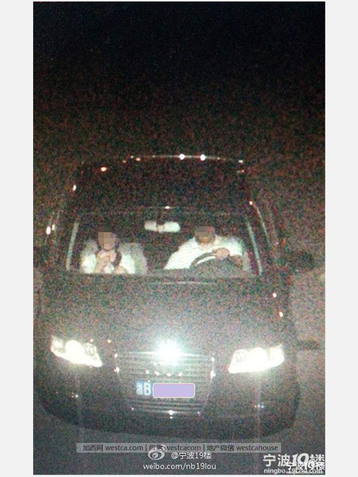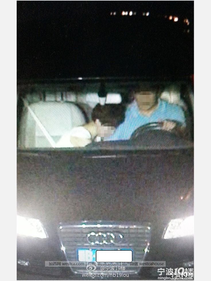 我碰到这个事,就让朋友查了下车牌,开奥迪的。一个上班的普通员工怎么可能买了房子,开的车还这么好,这钱哪里来的?最关键的是还带着小三车震。机关工作的朋友查了下,说居然是慈溪政府的工作人员,职位跟哪个部门以及车牌我就不曝光了。此人再过几年就要退休了,时尚倒蛮时尚的,还搞车震。