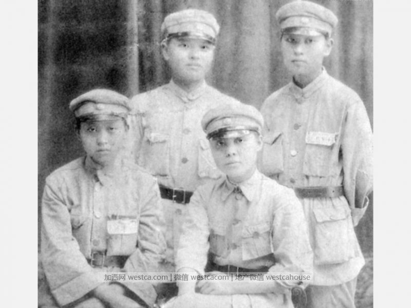 1927年春,曾宪植同志考入中央军事政治学校武汉分校。图为女生队学员合影,后排右为曾宪植。