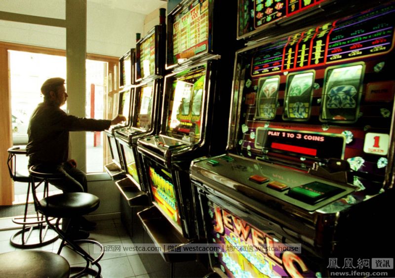 一个男人独自一人坐在椅子上玩老虎机。因为金融危机导致卢布暴跌,当时很少有人能在俄罗斯赌博。