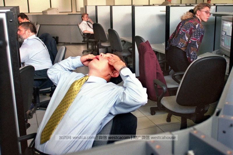 1998年8月14日,俄罗斯莫斯科,证券交易所内一名男子疲惫地靠在转椅椅背上。