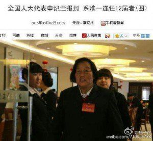 大跃进她赞成, 人民公社她赞成,文革她赞成,斗刘少奇她赞成,斗邓小平她赞成。否定大跃进她赞成,否定人民公社她赞成,否定文革她赞成,平反刘少奇她赞成,平反邓小平她赞成。她活在世上就为了赞成,唯一连任55年的全国人大代表----申纪兰,女,86岁,山西省长治市平顺县人。中国全国劳动模范,连续12届当选中国全国人民代表大会代表……之所以连任,就因为她赞成。中国人就是被这种牛人代表着!
