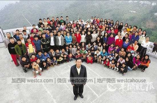 印度米佐拉姆邦的农村住着一户堪称世界上最大的家庭。67岁的家长齐奥纳·查纳共娶了39名妻子,并有94名子女、14名儿媳妇以及33名孙子女,全家住满4层楼。图为2011年10月7日,齐奥纳·查纳一家合影。