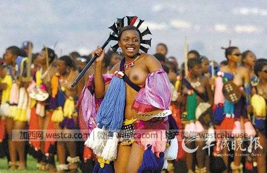 当地时间2010年9月17日,南非一年一度的“芦苇节”上,参加狂欢的少女裸露上身接受“处女测试”。南非总统祖马是“芦苇节”的座上宾,他是祖鲁文化的坚定支持者。有说这个节日也是总统选妃的日子