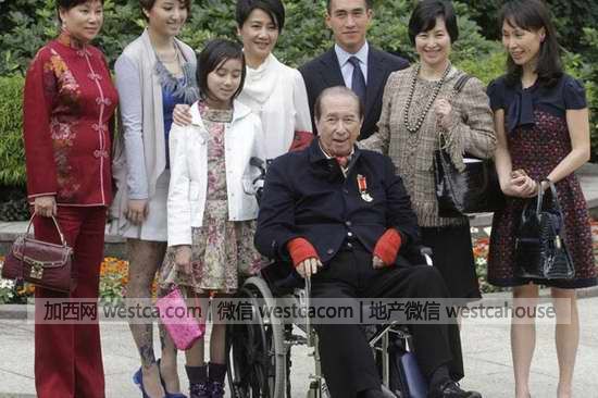 香港、澳门现今仍有家庭是一夫多妻的。著名例子有澳门“赌王”何鸿燊,他原有一妻一妾,而八十年代中期又公开了二位姨太太。图为2010年11月20日,何鸿燊获颁授大紫荆勋章,几房太太和子女陪伴出席。