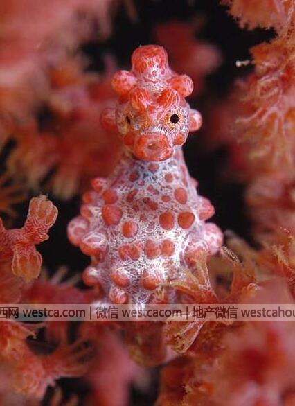 24. 侏儒海马。这种海马颜色鲜艳,所以能够在珊瑚礁旁伪装生活,大小只有2公分左右。