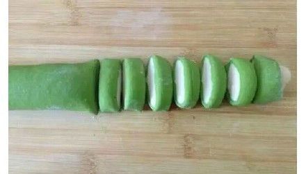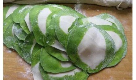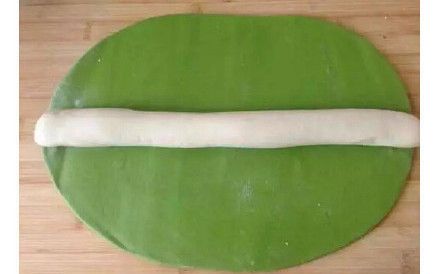 4. 菠菜水活的面擀成片,清水活面戳成条。