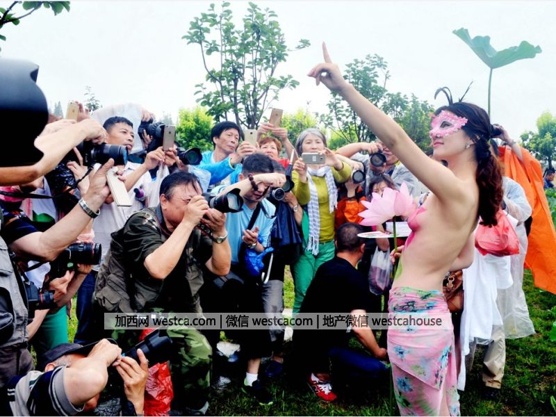 人体彩绘“荷花仙子”吸引了摄影爱好者和媒体的“长枪短炮”。