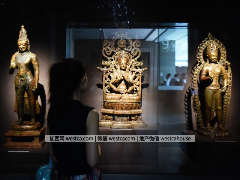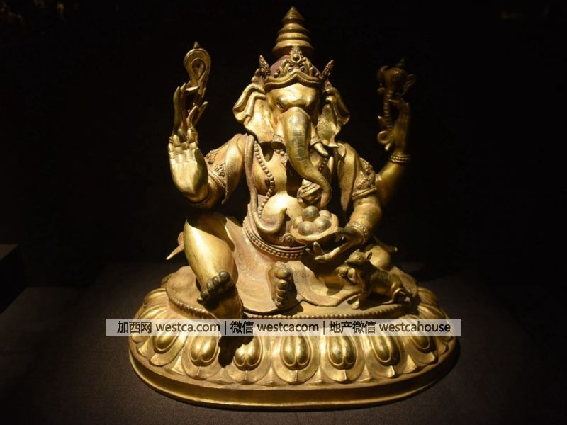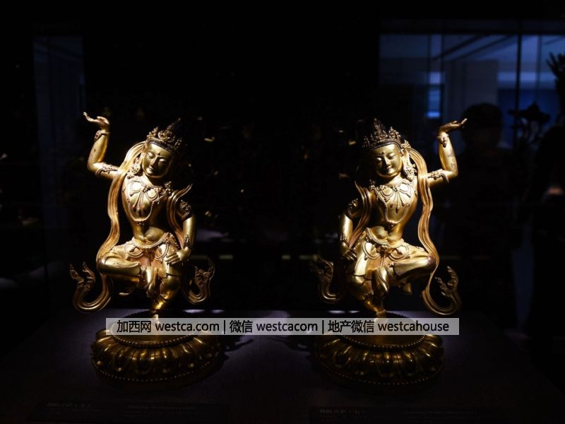 据了解,这些金铜佛像大多是元、明、清时期宫廷颁赐给藏区各界僧俗领袖的重要礼物,而这些金铜佛像集中展出,向公众全方位展示中国佛教造像的艺术魅力。图为17-18世纪铜鎏金的昆那夜迦。