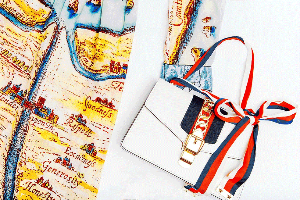 之前的Sylvie 手袋沒有過多的花紋機理,簡約中帶有英倫海軍風氣質,白色、藏藍色、紅色成為標志性的配色;絲綢手柄和竹節手柄設計讓我們在親密接觸包包(必不可少的動作)的時候有了更加別出心裁的質感體驗。