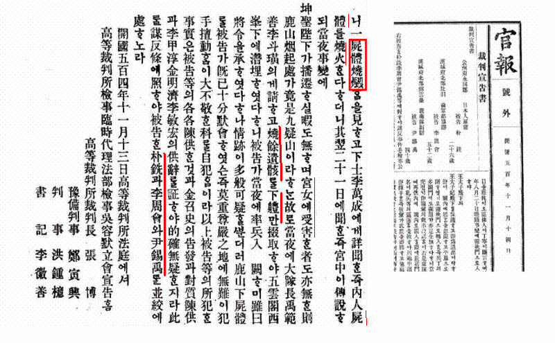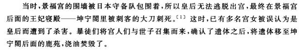 第二个问题比较重口,明成皇后有没有被奸杀,或者尸体受到了怎样的侮辱?