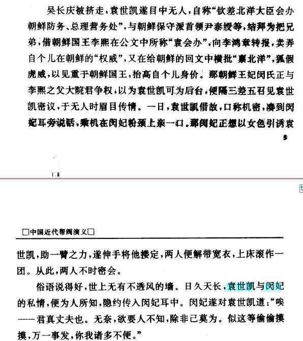 同样持袁世凯私通闵妃说法的还有《中国全史·野史》、《袁世凯画传》……这些书有个共同的特点,那就是野。