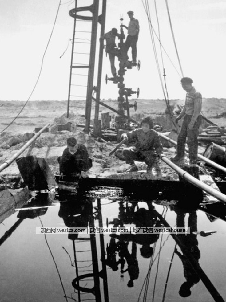 1956年,新疆克拉玛依,油井出油。(图源:VCG)